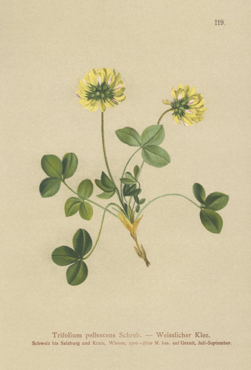 Bleke Klaver(Pale Clover (Trifolium pallescens) )German School |