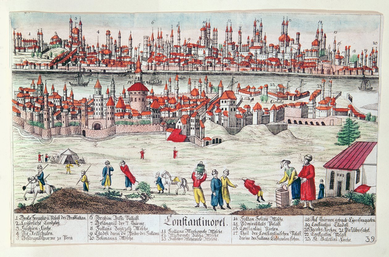 Panoramisch uitzicht op Constantinopel(Panoramic view of Constantinople )German School |