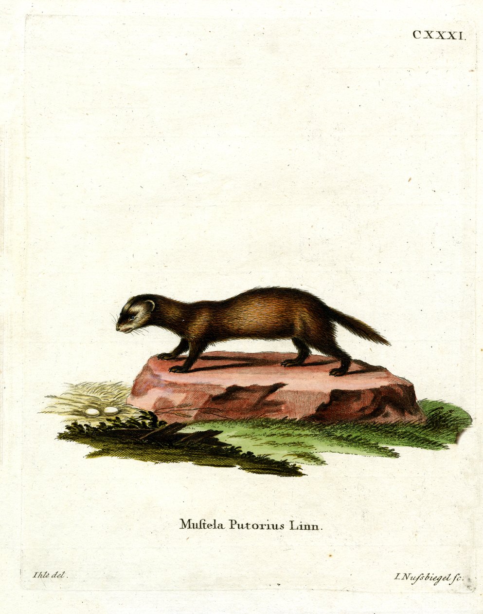 Europese bunzing(European Polecat (coloured engraving))German School |