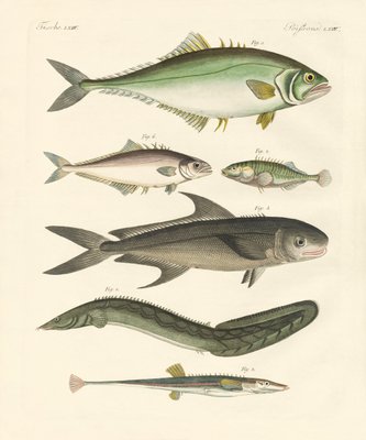 Verschillende soorten schelpdieren(Different kinds of shellfish (coloured engraving))German School |