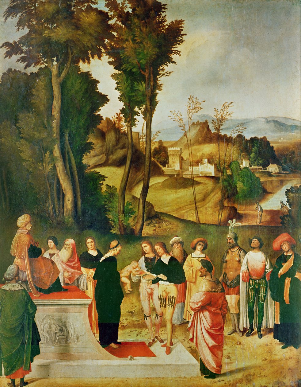 Mozes wordt getest door de farao, c.1502-05(Moses being tested by the Pharaoh, c.1502-05 )Giorgione da Castelfranco |