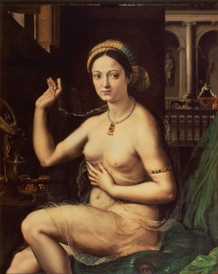Dame op haar toilet (schilderij op doek)(Lady at her toilet (painting on canvas))Giulio Romano |