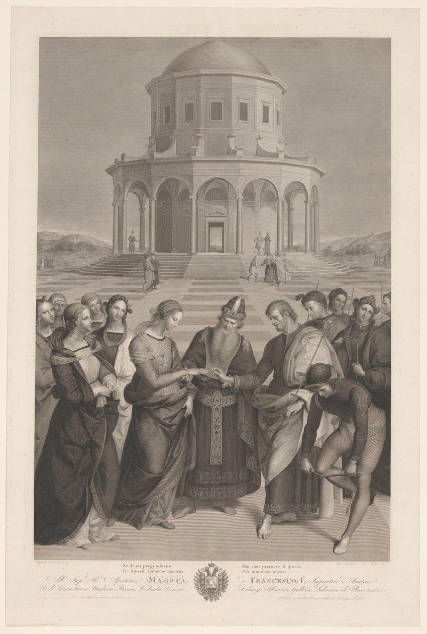 Huwelijk van Maria en Jozef(Huwelijk van Maria en Jozef Lo sposalizio)Giuseppe Longhi(print maker),Giuseppe Longhi(after drawing by),Rafaël(after painting by) |