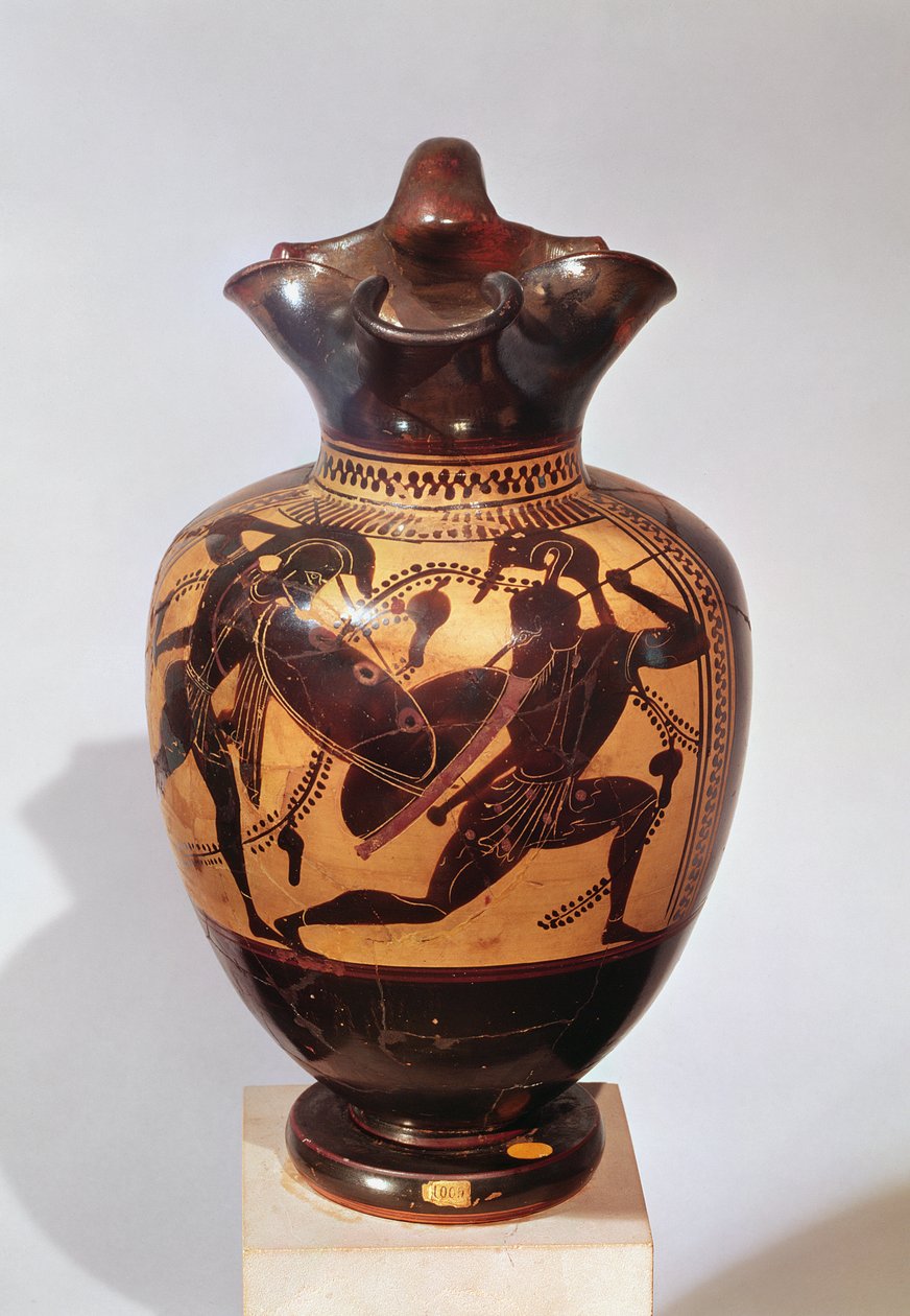 Zwartfigurige oinochoe versierd met krijgers, c.530-520 v.Chr.(Black-figure oinochoe decorated with warriors, c.530-520 BC (ceramic))Greek |
