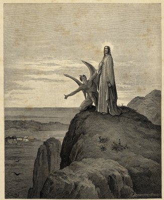 "De verzoeking van Christus" Jezus gaat de woestijn in en wordt verzocht door de duivel. Illustratie door Gustave Dore (1832-1883) voor de Bijbel. 1866(“The temptation of Christ” Jesus leads into the desert is tempted by the devil. Illustration by Gustave Dore (1832-1883) for the Bible. 1866)Gustave Dore |