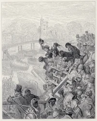 Putney Bridge - de Terugkeer, uit 'Londen, een Pelgrimage', geschreven door William Blanchard Jerrold (1826-84), gegraveerd door Henri-Theophile Hildibrand (1824-97), gepubliceerd 1872(Putney Bridge - the Return, from 'London, a Pilgrimage', written by William Blanchard Jerrold (1826-84), engraved by Henri-Theophile Hildibrand (1824-97), pub. 1872 )Gustave Dore |