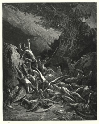 Illustratie van Gustave Doré voor Miltons Paradise Lost, Boek VI, regels 874, 875(Illustration by Gustave Dore for Miltons Paradise Lost, Book VI, lines 874, 875 )Gustave Dore |