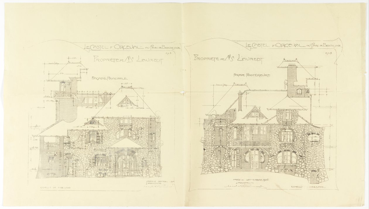 Gevels, voor- en achtergevels, Castel d'Orgeval, Parc Beausejour, nabij Parijs(Elevations, Principal and Rear Façades, Castel d'Orgeval, Parc Beausejour, near Paris)Hector Guimard |