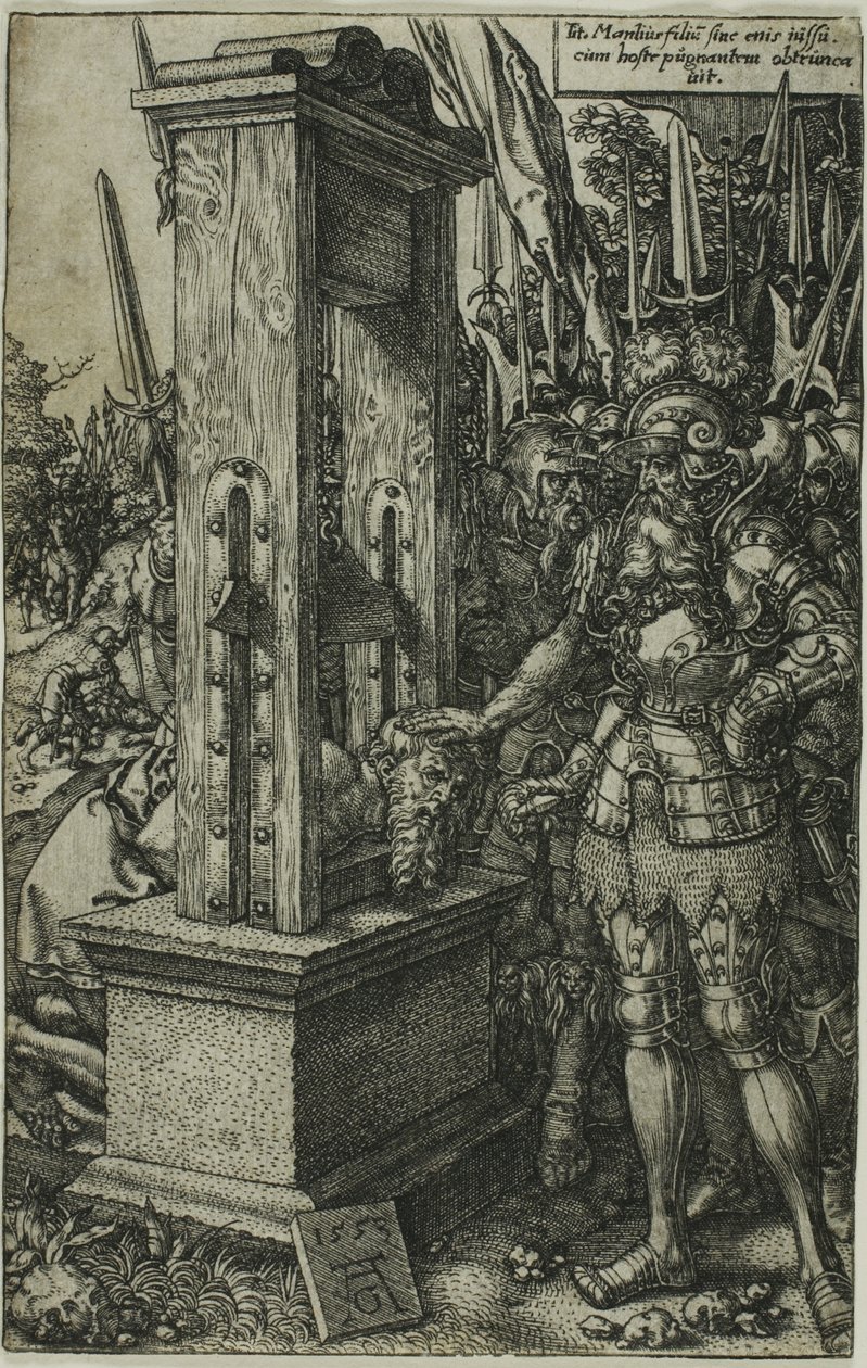 Titus Manlius onthoofdt zijn zoon(Titus Manlius Beheading his Son)Heinrich Aldegrever |