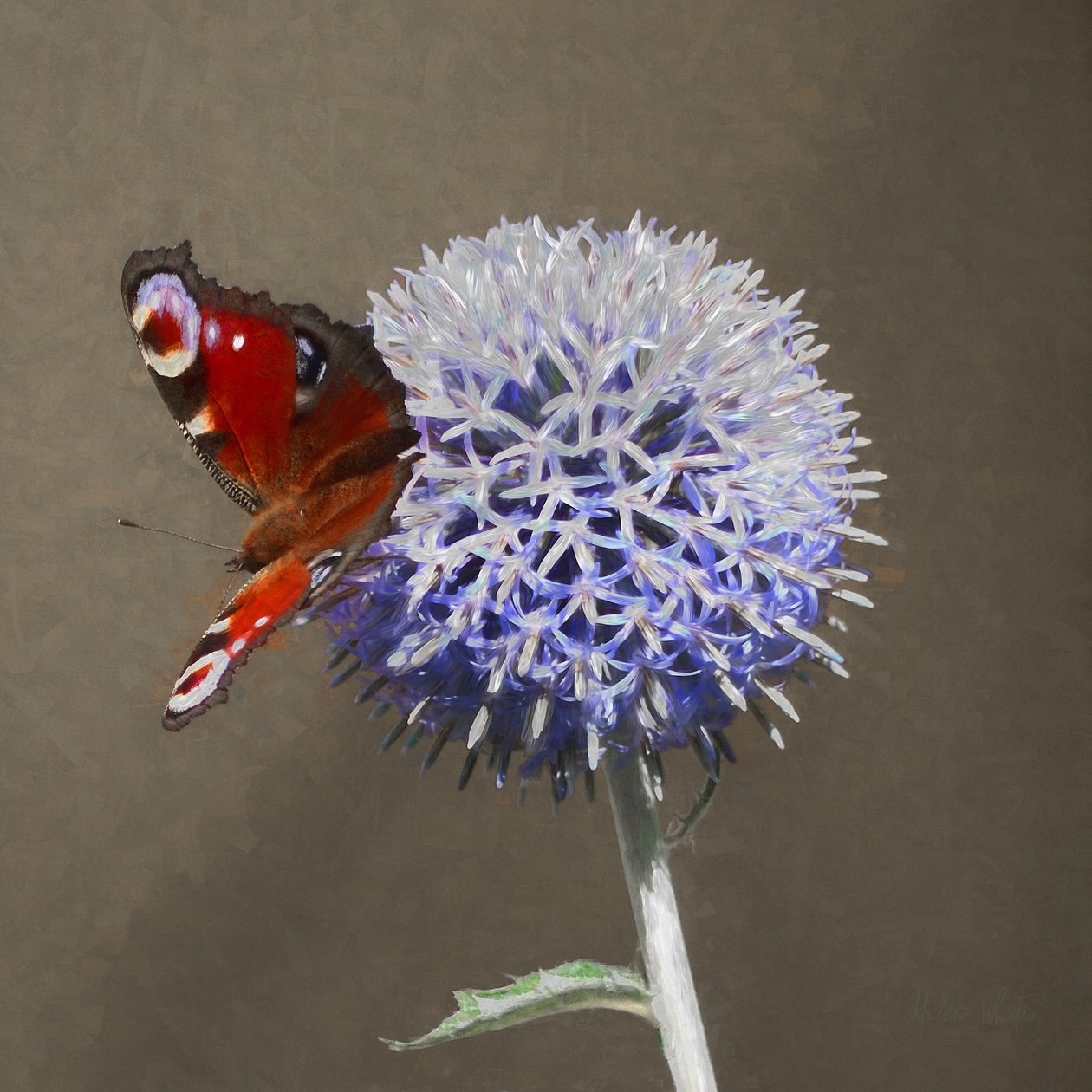 Pauw op Blauwe Distel(Peacock on Blue Thistle, 2018)Helen White |