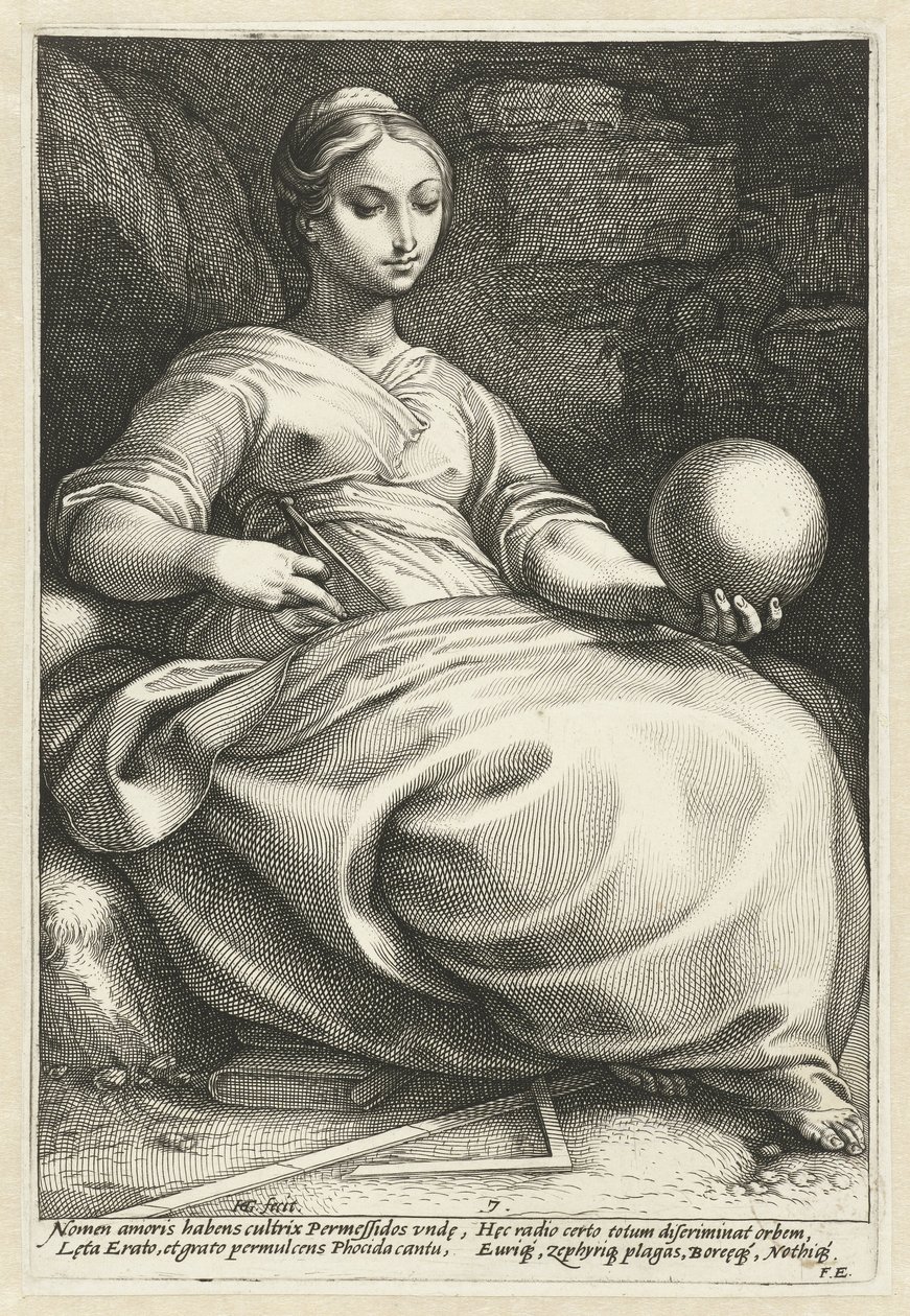 Erato(Erato De negen muzen (series title))Hendrick Goltzius(print maker),Hendrick Goltzius(after own design by),Franco Estius |