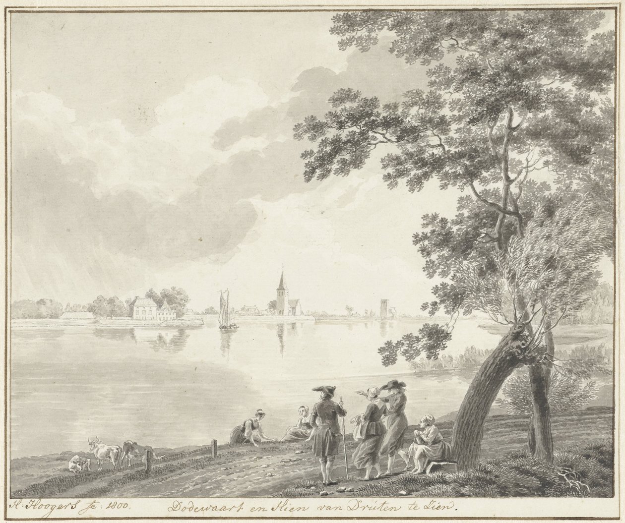Gezicht op Dodewaard en Hien(View of Dodewaard and Hien)Hendrik Hoogers(draughtsman) |
