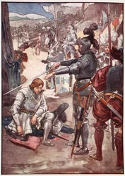 Francis I, de koning van Frankrijk ontving de ridderorde van Bayard(Francis I, the king of France received the order of knighthood from Bayard)Henry Justice Ford |