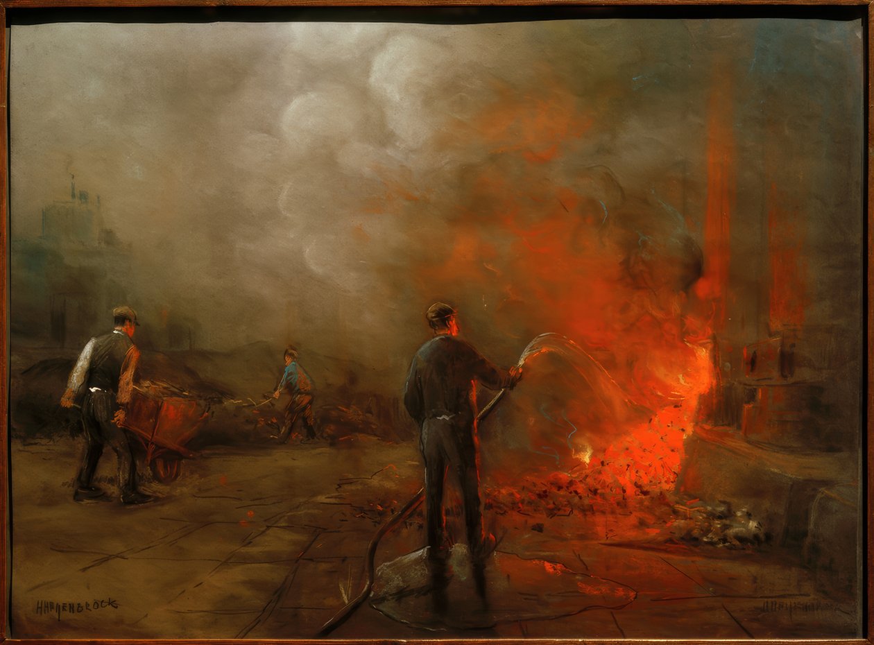 Arbeiders die cokes lossen in een fabriek(Arbeiter, die in einer Fabrik Koks löschen)Herman Heijenbrock |