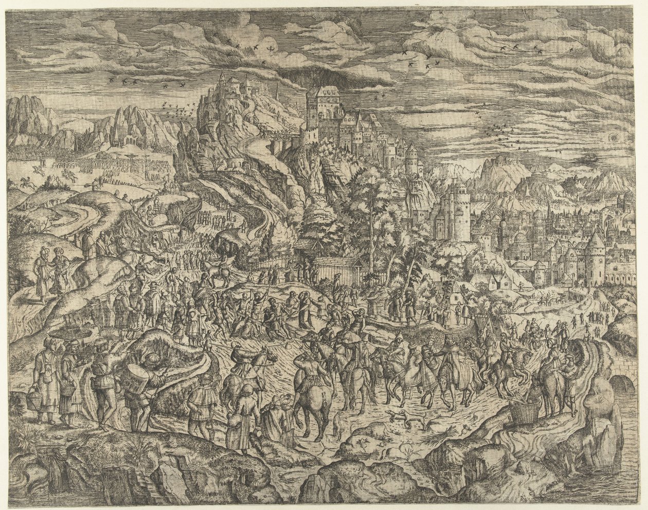 Landschap met Kruisdraging(Landscape with the Carrying of the Cross)Herri met de Bles(print maker),Herri met de Bles(after own design by) |