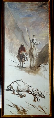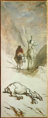 Don Quichot en de dode muilezel(Don Quixote and the dead mule Illustration from the novel by Miguel Cervantes “Don Quixote de la Mancha” (El ingenioso Hidalgo Don Quijote de la Mancha). Painting by Honore Daumier (1808-1879). 19th century Sun. 1,32x0,54 m .)Honoré Daumier |