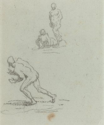 Badgasten (zwart krijt op groen gelegd papier)(Bathers (black chalk on green laid paper))Honore Daumier |