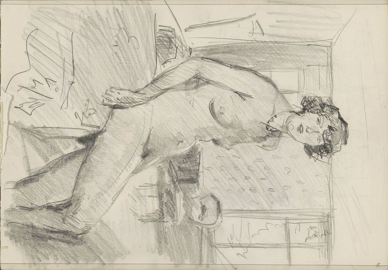 Zittend vrouwelijk naakt in een interieur(Seated Female Nude in an Interior)Isaac Israels(draughtsman) |