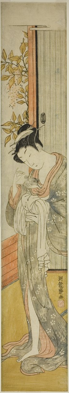 Jonge vrouw die een rat voedt(Young Woman Feeding a Rat)Isoda Koryusai |