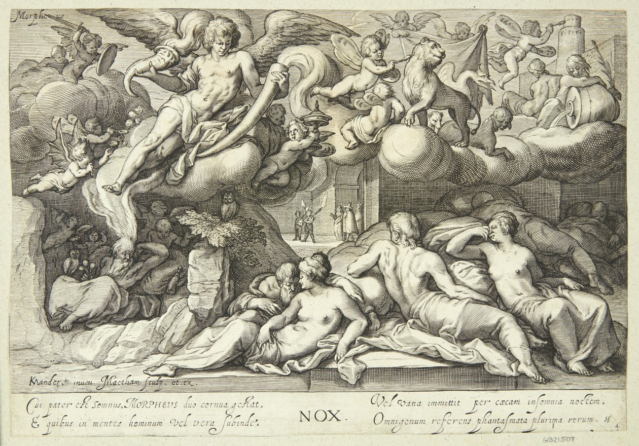 Nacht, Morfeus' tijd(Nat, Morfeus' tid)Jacob Matham,Karel van Mander I(after model by),Jacob Matham(publisher) |