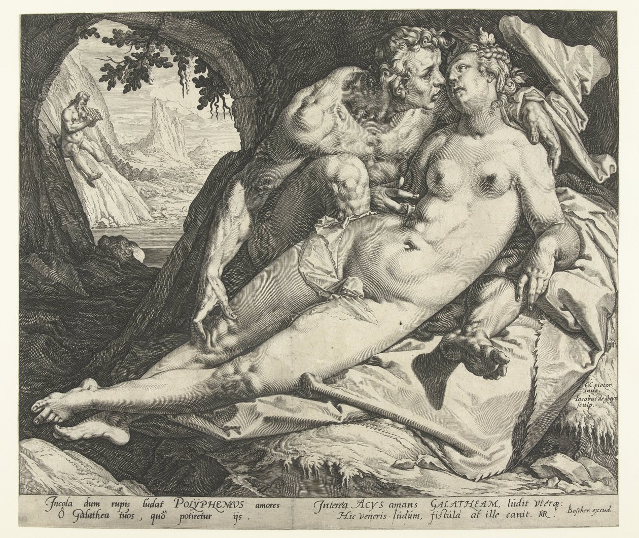 Acis en Galatea(Acis and Galatea)Jacob de Gheyn (II)(print maker),Cornelis Cornelisz. van Haarlem(after painting by),Heyman Jacobi |