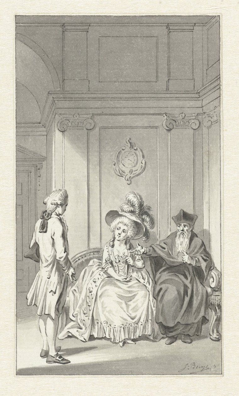 Interieur met geestelijke, dame en jongeman(Interior with Cleric, Lady and Young Man)Jacobus Buys(draughtsman) |