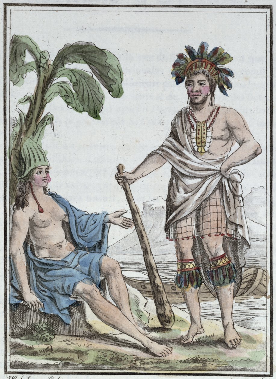 Een man en vrouw van Paaseiland, uit 'Encyclopedie des Voyages', gegraveerd door Mixelle, gepubliceerd in 1810(A Man and Woman from Easter Island, from 'Encyclopedie des Voyages', engraved by Mixelle, published in 1810 )Jacques Grasset de Saint-Sauveur |