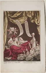 Nachtelijke bezoekers op St. Ann Een Midzomernachtsdroom Matins bij Downing College, Cambridge, uitgegeven door Hannah Humphrey in 1810 Ochtendgebed op D-wn-ng College, Cambridge, uitgegeven 1810 __ ci devant Bezigheden, of Mevrouw Talian en de Keizerin Josephine Dansen Naakt voor Barrass in de Winter van 1797 - een Feit! Shakespeare geofferd of het offer aan hebzucht, 1789 Tom Paine Politieke dromen, visioenen van vrede, toekomstige verschrikkingen, karikatuur over de Vrede van Amiens, 25 maart 1802 De Aartshertogin Maria Louisa gaat haar dutje doen, 1810 Een droom, 1829 Nederlandse nachtmerrie of de broederlijke omhelzing teruggegeven met een Nederlandse knuffel, 30 november 1813 Modieuze Jockeyschap, uitgegeven door Hannah Humphrey Alle Lotgevallen beloofde hij hem bekend te zijn, En toch kon hij zijn eigen niet vertellen, karikatuur van een waarzegger, pub. door R. Ackermann, 1815 Shakespeare geofferd of het Offer van Hebzucht Politieke dromen! - Visioenen van vrede! - Perspective Horrors! uitgegeven door H. Humphrey in 1801 (handgekleurde ets) Het testament van de antiquair, The English Dance of Death, plaat 2, april 1, 1814 Engeland De skelet van de Dood komt voor de dokter, terwijl de priester bidt over het dode lichaam van een goede man die wordt betreurd door zijn vrouw en kind. Handgekleurde kopergravure door Thomas Rowlandson uit The English Dance of Death, Ackermann, Londen Een Medische Inspectie of Wonderen Zullen Nooit Ophouden De skelet van de Dood komt voor de waarzegger in zijn kamer versierd met planetenbollen, astrologieboeken en een krokodil. Twee vrouwelijke klanten kijken in angst toe. Handgekleurde kopergravure getekend en gegraveerd door Thomas Rowlandson uit The Englis De Jersey-smokkelaar betrapt, of Goede redenen voor ontevredenheid: Duitse luxe of Repos à l De droom van de geliefden, 1795 Illustratie uit Hudibras door Samuel Butler Het temmen van een feeks of Petruchio Duitse luxe, of Repos à l Shakespeare Geofferd; of, Het Offer aan Hebzucht Het spook van hertog Willem, gepubliceerd door Hannah Humphrey in 1799