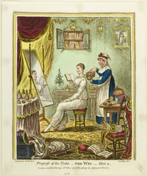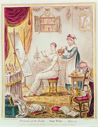 (Progress of the Toilet - The Wig, early C19th (hand-coloured engraving))