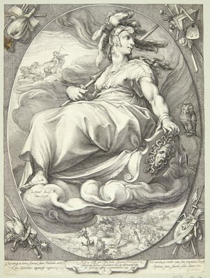Pallas Athena, uit Drie Godinnen Zittend in de Wolken door Jan Saenredam