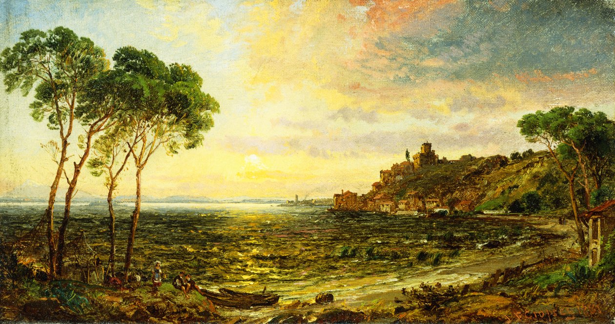 Zonsondergang boven het Meer van Thrasemine, 1887(Sunset over Lake Thrasemine, 1887)Jasper Francis Cropsey |