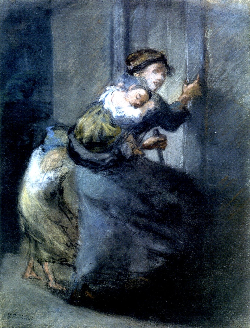 Een moeder vlucht met twee kinderen(A Mother Fleeing with Two Children (pastel on paper))Jean Francois I Millet |