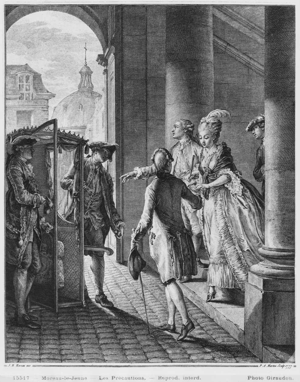 De Voorzorgsmaatregelen, gegraveerd door Pietro Antonio Martini (1739-97) 1777(The Precautions, engraved by Pietro Antonio Martini (1739-97) 1777 )Jean Michel the Younger Moreau |