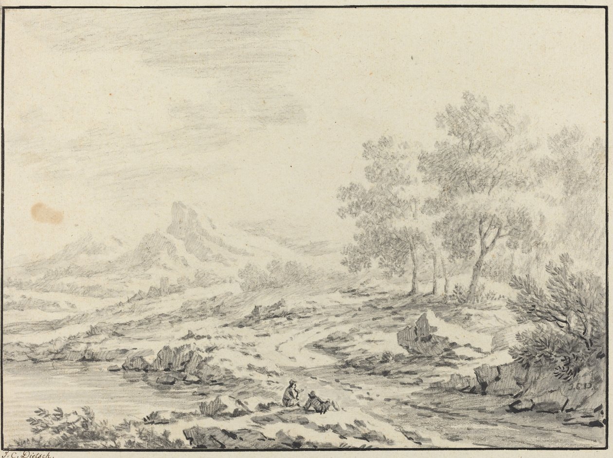 Twee Mannen Rustend bij een Meer(Two Men Resting near a Lake. )Johann Christoph Dietzsch |