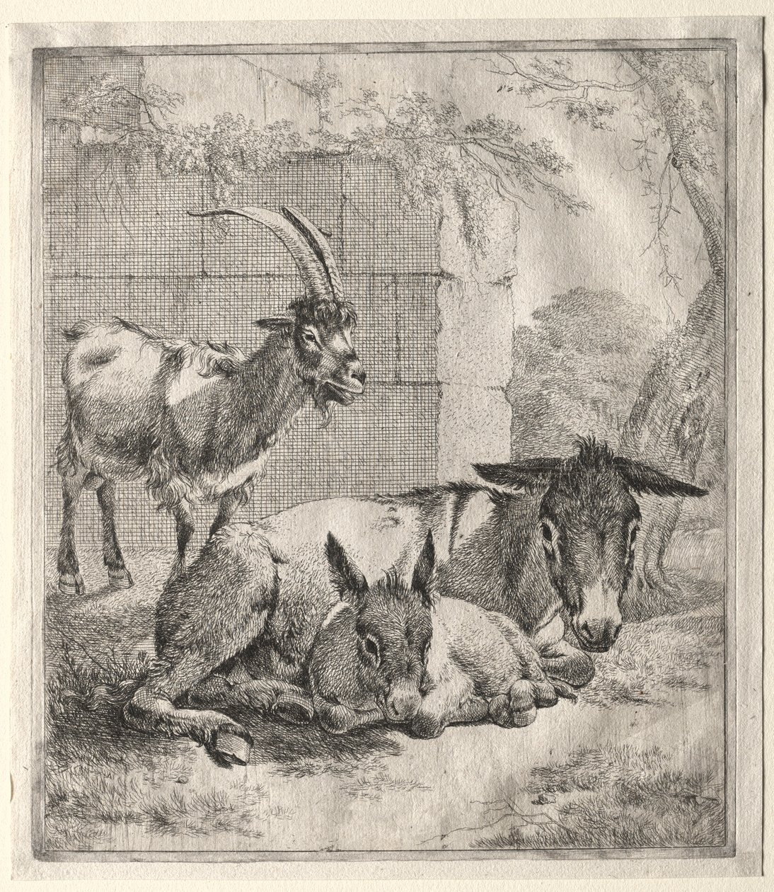Geit en ezels(Goat and Donkeys. )Johann Heinrich Roos |