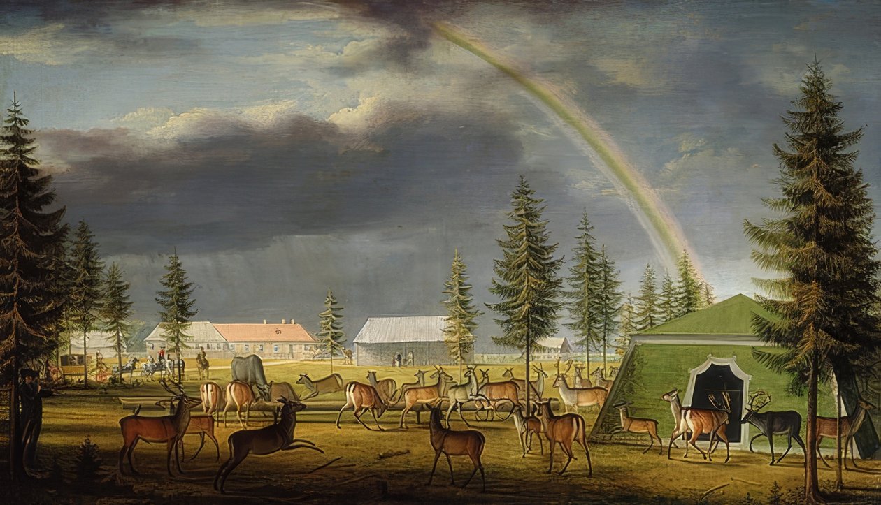 Dierententoonstelling in het kasteelpark van Gattschina. 1792(Tierschau im Schlosspark von Gattschina. 1792)Johann Jakob Mettenleiter |