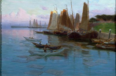 Vissersboten in haven (schilderij)(Fishing boats in harbour (painting))Johannes Martin Grimelund |