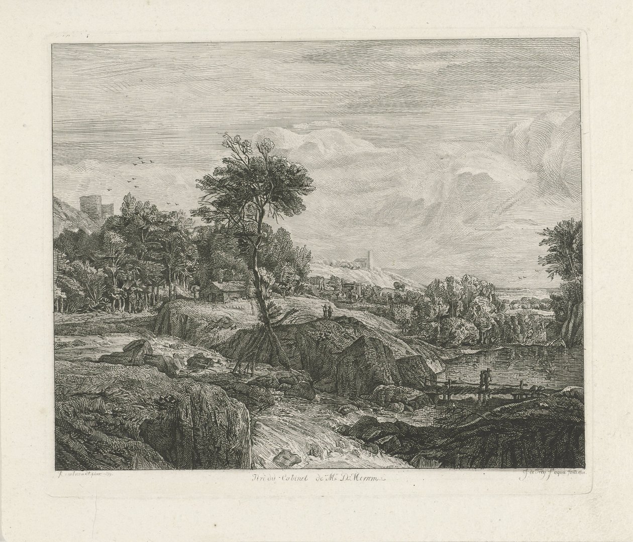Rotsachtig landschap(Rocky Landscape)Johannes Pieter de Frey(print maker),Rembrandt van Rijn (attributed to)(after painting by) |