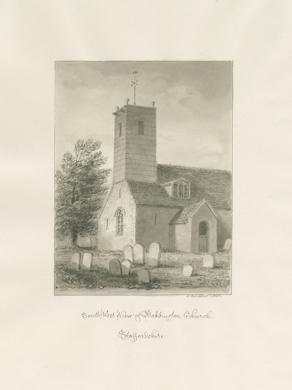 Kerk van Bobbington(Bobbington Church: sepia drawing)John Buckler |