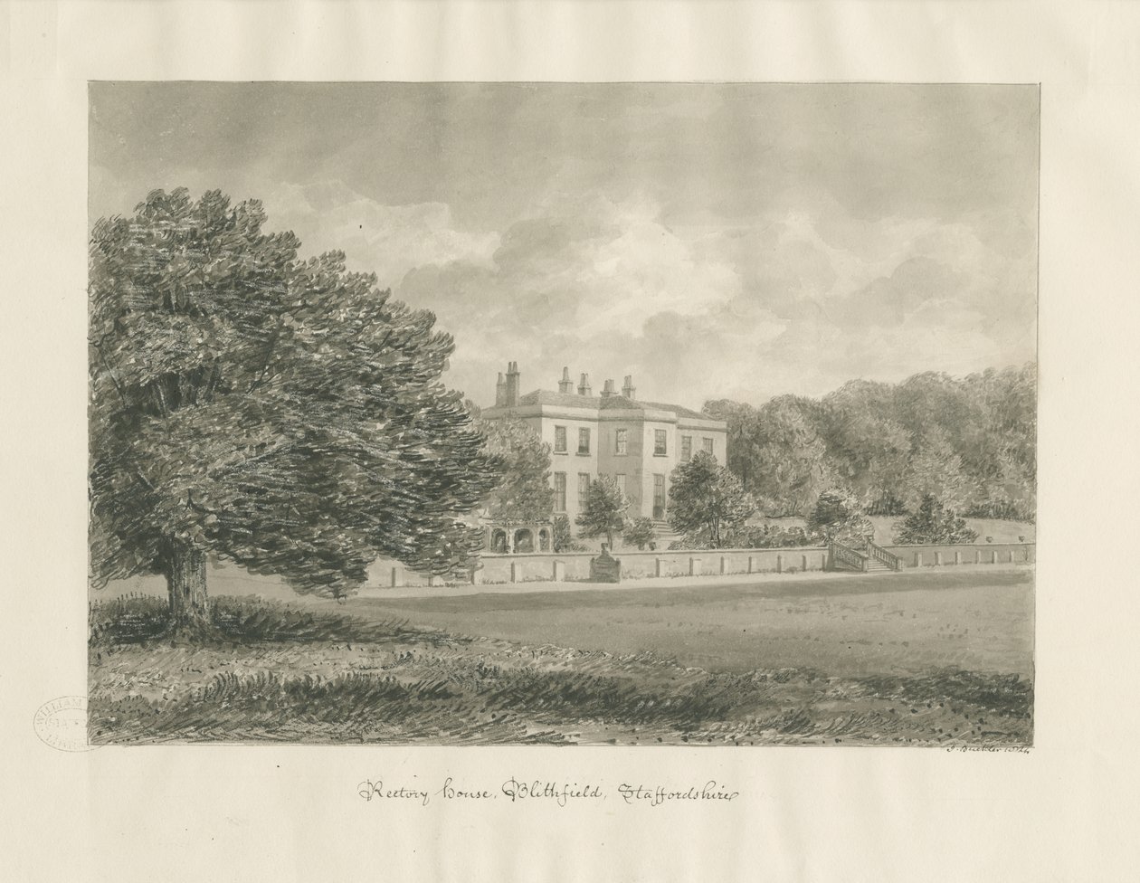 Pastorie van Blithfield(Blithfield - Rectory: sepia drawing)John Buckler |