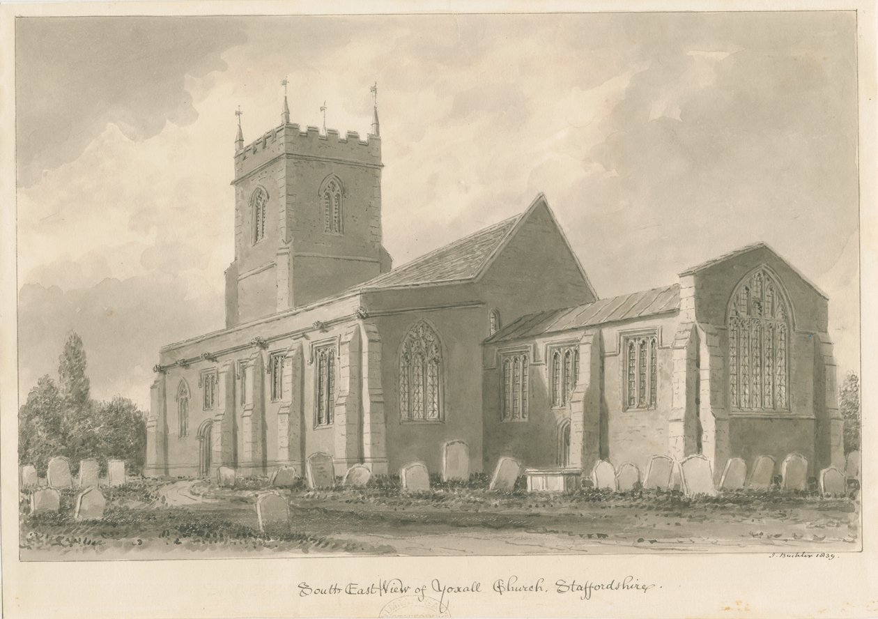 Yoxall Kerk(Yoxall Church: sepia drawing)John Buckler |