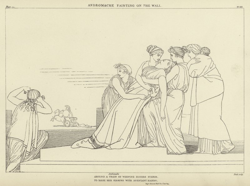 Andromache flauwvallend op de Muur(Andromache fainting on the Wall )John Flaxman |