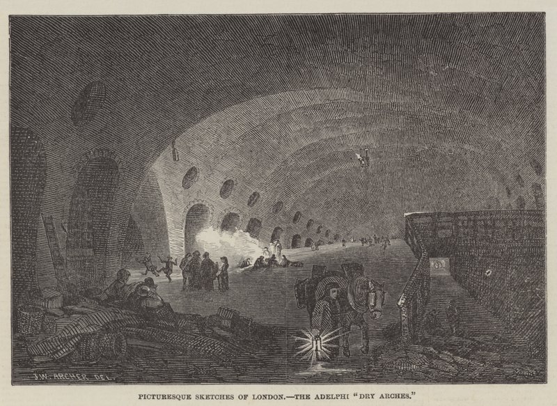 Pittoreske schetsen van Londen, De Adelphi Droge Bogen(Picturesque Sketches of London, The Adelphi Dry Arches )John Wykeham Archer |