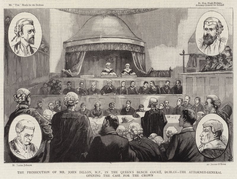 De vervolging van de heer John Dillon, MP, in het Queen's Bench Court, Dublin, de procureur-generaal opent de zaak voor de Kroon(The Prosecution of Mr John Dillon, MP, in the Queen's Bench Court, Dublin, the Attorney-General opening the Case for the Crown )Joseph Finnemore |