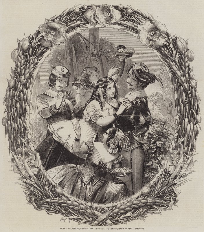 Oude Engelse gebruiken, liefdestokens(Old English Customs, Love Tokens )Joseph Kenny Meadows |