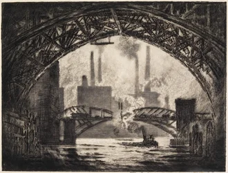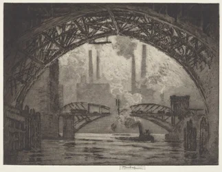 Onder de Bruggen, Chicago, 1910(Under the Bridges, Chicago, 1910)Joseph Pennell |