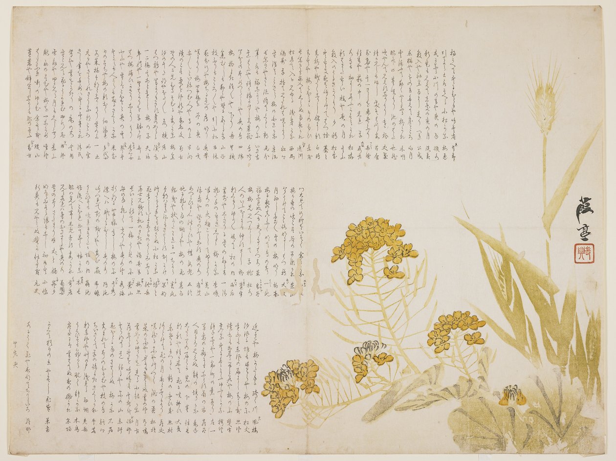 Raapzaad en tarwe, 1854(Rape blossom and wheat, 1854 (colour woodblock print))Katei |