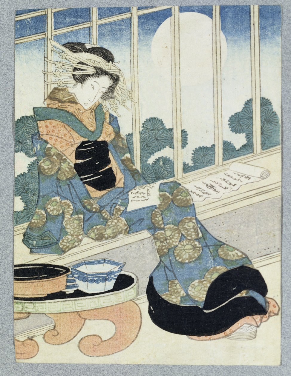 Japanse Dame die Leest bij Maanlicht(Japanese Lady Reading by Moonlight (woodblock print))Keisai Yeisen |