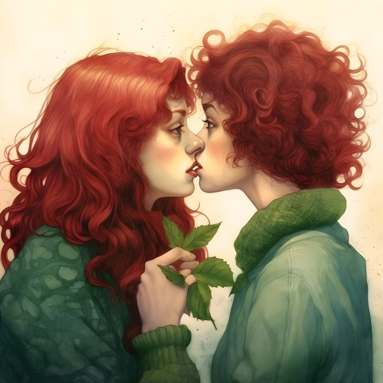 Deze afbeelding is gemaakt met behulp van generatieve AI. 2023 · Digital Art - Computermade 3d - midjourney - Photoshop · Afbeelding ID: 1469168 _ander_meisje_met_rood_krullend_haar_groen