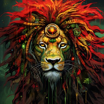 Deze afbeelding is gemaakt met behulp van generatieve AI. 2023 · Digital Art - Computermade 3d - midjourney - Photoshop · Afbeelding ID: 1476092 in de stijl van rood, groen en goud, technologische kunst, afrocentrische popcultuur, rustiek realisme, close-up, post-apocalyptisch, stripkunst